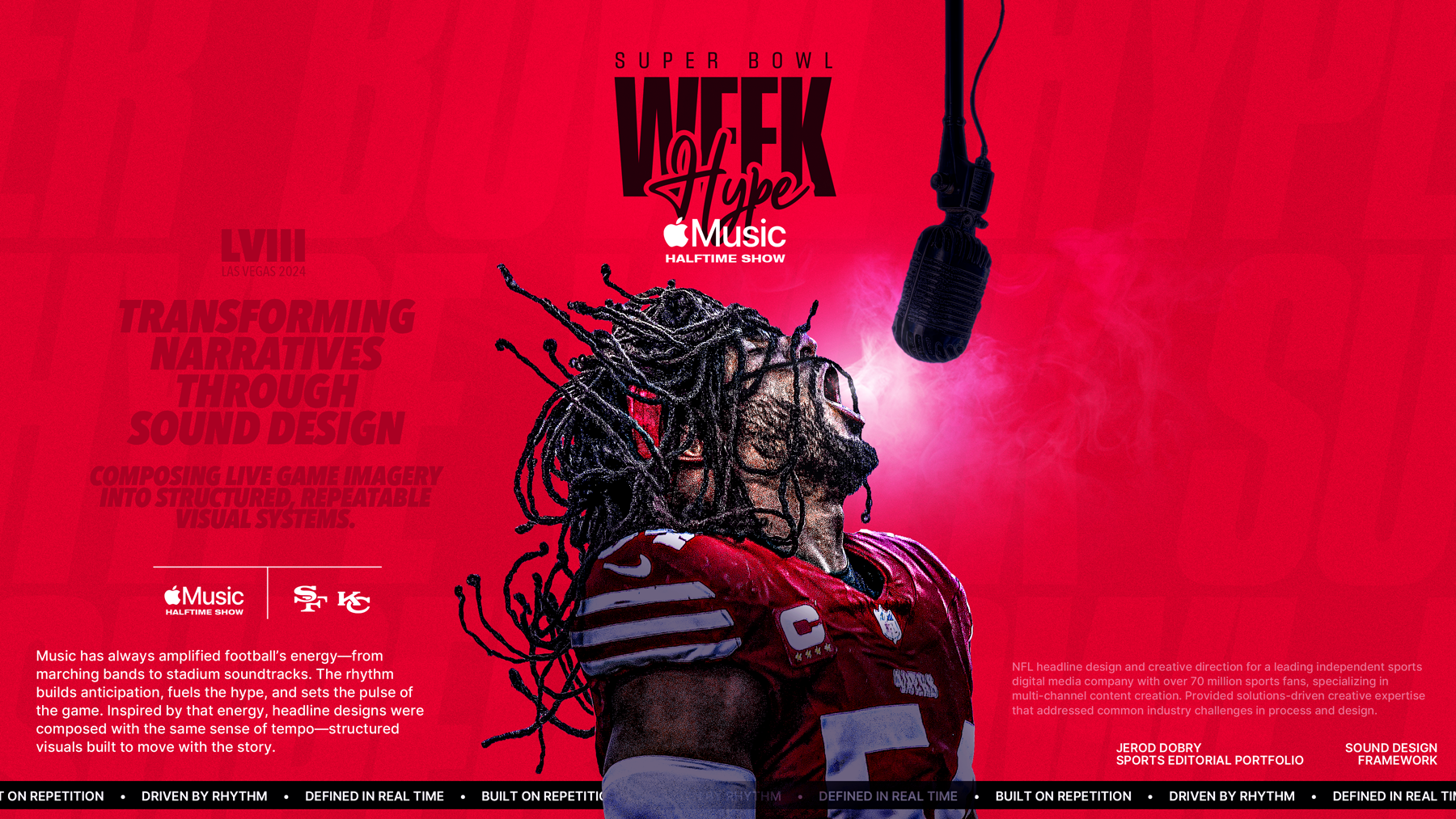 Design systems, like music, rely on rhythm and repetition. These slides explore how pattern, timing, and structure shaped the visual language across teams and headlines.